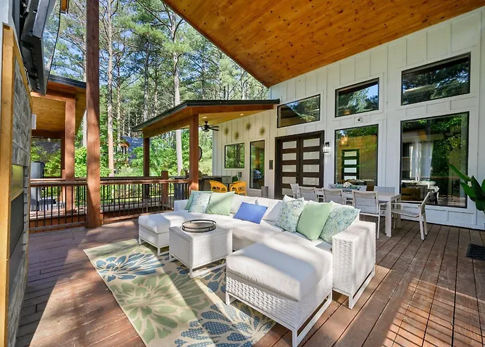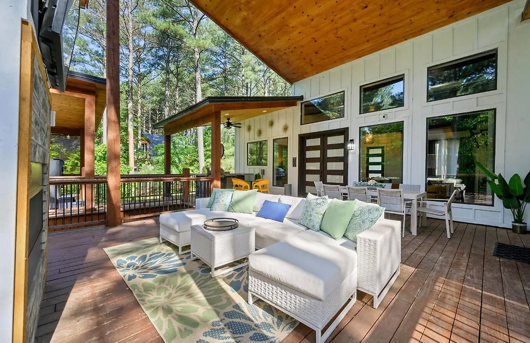 Luxe Privacy At Gorgeous Broken Bow Cabin Home is appointed with high-speed internet and a TV set, featuring comforts, such as an ironing set and air conditioning. There are also dryers and towels.